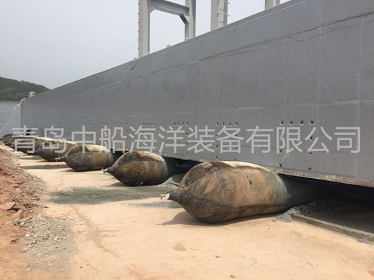 2017年6月,韓國客戶采購我司船用起重下水氣囊,受場地自身限制,本次下水必須將氣囊預埋混凝土浮動碼頭下方,待碼頭造好后,起重碼頭下水, 所選用氣囊規格為直徑1.0m×18m,數量16條,成功起重下水,圖為現場起重下水!